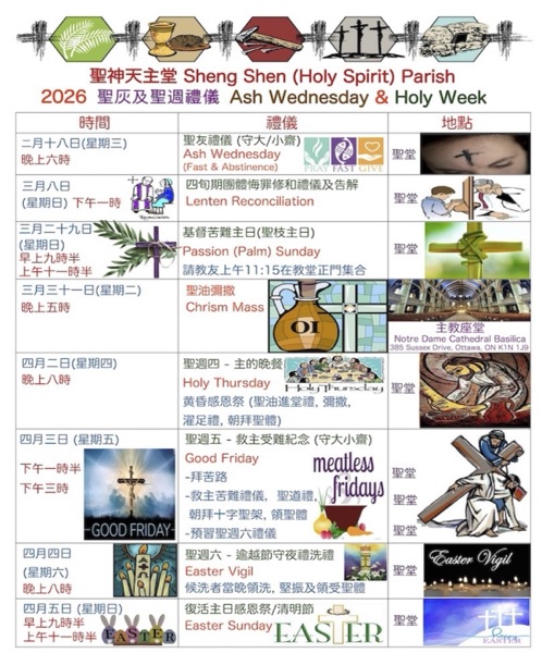 In addition, during Lent, Fr. Zhou will be available for confession every Sunday after Mass by appointment.